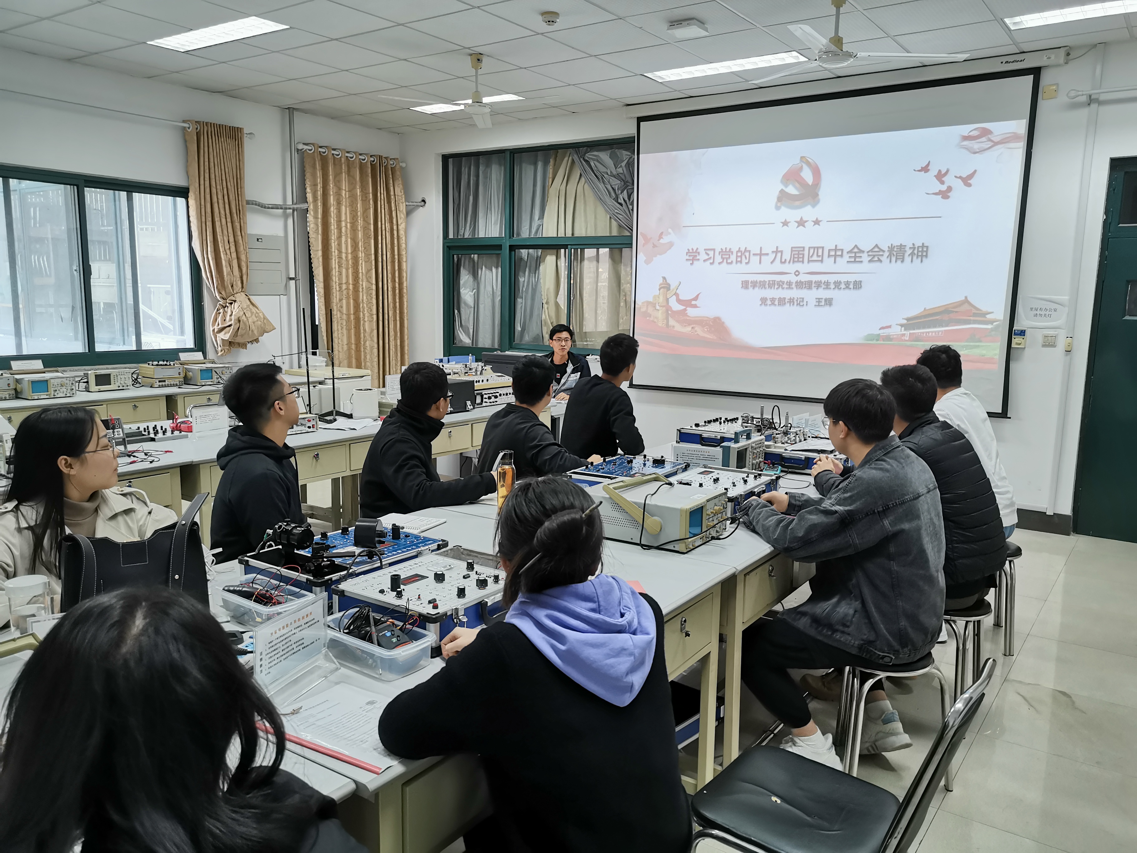 会议伊始,王辉从理论角度带领支部成员对十九届四中全会精神进行全面的学习,重点强调十九届四中全会的一个重要判断、十三个“坚持”、一个总体目标、十三个“坚持和完善”,深入分析“中国之治”的深刻内涵,并结合自身实际和支部建设,将十九届四中全会精神落实到支部每个成员。他还强调,支部党员要特色鲜明讲政治,关心党的大政方针和最新理论成果,要结合自身的学习和工作,做到党性教育起作用、爱国情怀在心中。随后,支部党员交流对全会精神的学习感悟、自身需要努力和加强的方面,任臣同志表示:“对十九届四中全会精神有了更进一步的了解,激励自己不断做到学以致用,把会议精神实实在在的落实到实际行动中去。”