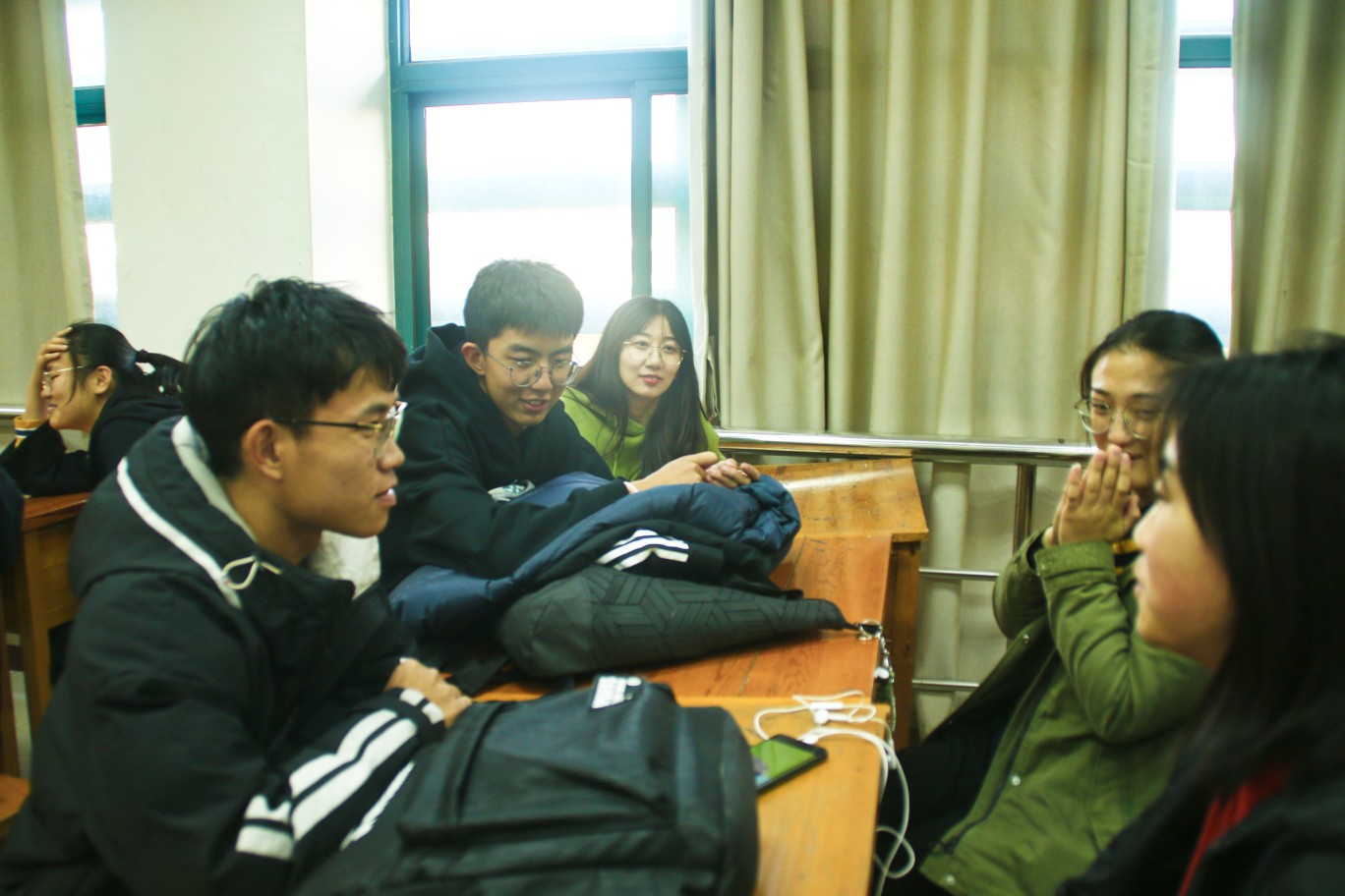 活动伊始,心理委员于颖带领同学们报号分组,进行心理团辅活动的准备工作。接着,开始第一个项目——滚雪球,全体同学通过报号形式进行分组,以6-8人组成一个小组,各小组选定一个固定位置开始“滚雪球”游戏环节,小组成员互相提问问题,小组成员依次作答。随后,由团支书刘梦婷组织进行第二个活动项目——打电话,此时沿用第一个活动分组,每小组成员坐成一列,由第一个同学向下一个同学传话,最后一个同学写出传话内容交给心理委员于颖。活动最后,刘梦婷组织进行活动惩罚与奖励。
