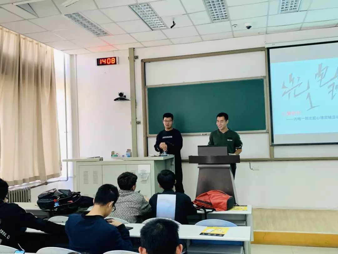 活动伊始,班长雷传捷提出了班级现存的沟通交流问题。随后,心理委员邹德智借助高数期中考试引出了抑郁症的相关知识,让员工对抑郁症及抑郁情绪有了更好的认识。接着,为增进班级同学间的了解,班级同学被随机分为五组并相互进行自我介绍。此后进行的打电话等游戏,活跃了氛围,同时增进了员工对彼此的了解。游戏结束后邹德智对心理健康的知识进行了简要的概述,并总结了心理不健康群体所具有的特质。最后,雷传捷对活动进行了总结,提出了心理健康是未来四年生活与学习的基石这一观点,并对全班员工做出承诺,竭尽全力保证所有员工未来四年心理健康。最后,班级全体成员合唱班歌《夜空中最亮的星》。