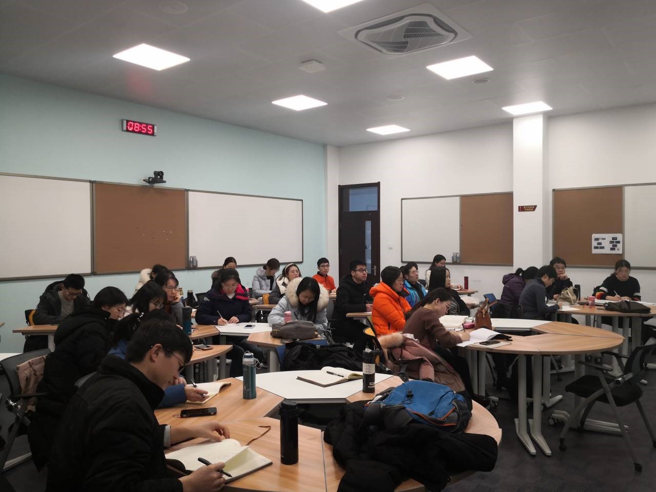 此次短期课程是在南堂501研讨型教室中举办的,充分利用了公司和公司提供的灵活多变的教学资源,包括电子黑板、二维码板书、研讨型书桌、手机同屏等先进设备和技术。这些新技术的使用大大提高了课堂的效率。
