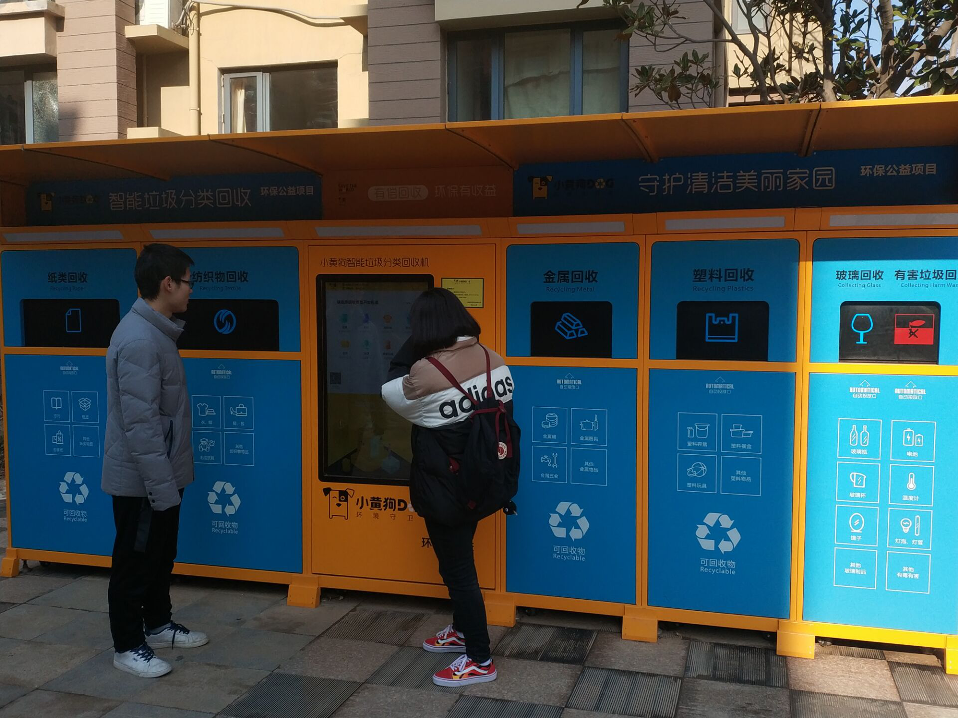 据队员们调查了解,该地区的垃圾分类已经实现智能化管理模式,居民可以将可回收的生活垃圾直接售卖,实现垃圾的高效回收。队员们还将自己的空饮料瓶投放进行测验,测试过程顺利,仪器操作简单。队员们都不禁为当前该地区的垃圾分类政策实施情况感到惊叹。