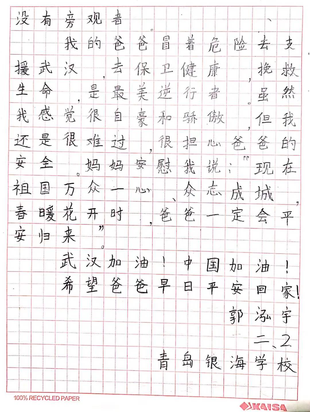 物理1702司亚玺在听课后深有感触:“郭俊杰医生是无数奋战一线医护人员的缩影,在此向奋战在疫情防控第一线的医务人员致敬,向伟大的祖国致敬!一线医护人员们顽强的意志品质和强大的精神力量深深影响着我们当代老员工,我们要传承和发扬抗‘疫’精神,不负韶华,砥砺前行。”