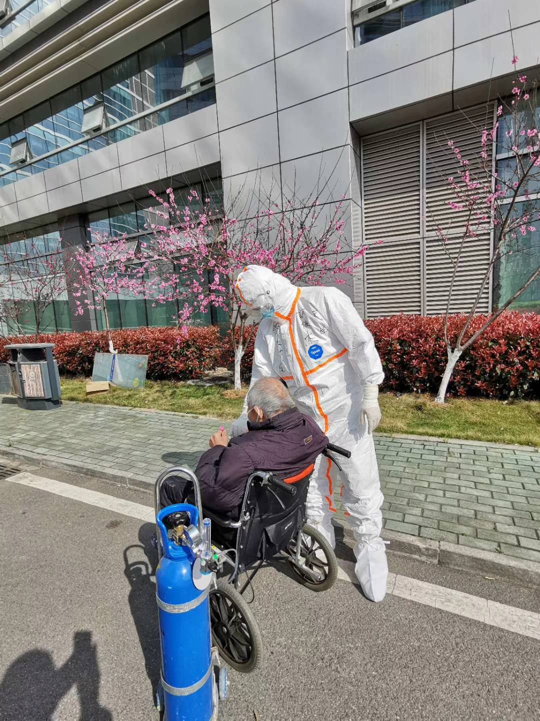 郭俊杰照料过最年长的一位患者是91岁的老爷爷,来入院时身体情况非常糟糕,喘憋严重,肺部病变严重影响了老爷爷的日常活动,生活完全不能自理,外出做检查时需多人搀扶,在郭俊杰及大家的共同努力下,老爷爷目前病情明显好转,就在一次外出检查时,老爷爷说:“天气好,真想多晒晒太阳”。疲惫的脸庞露出了久违的笑容。看着患者病情的好转,郭俊杰心中倍感欣慰骄傲。