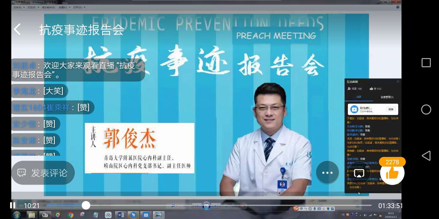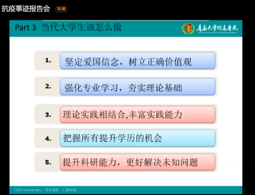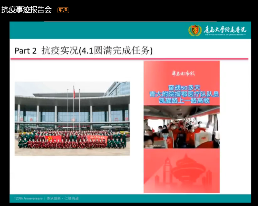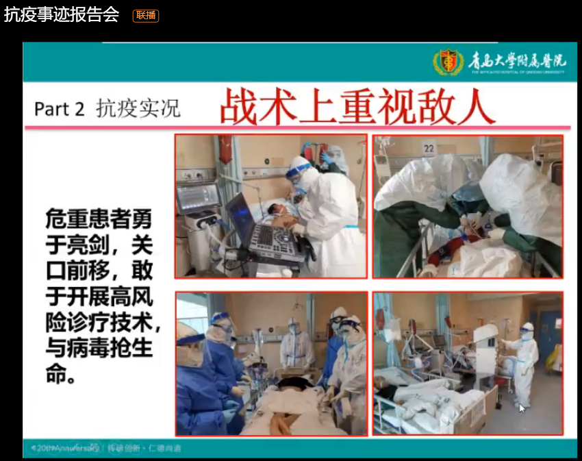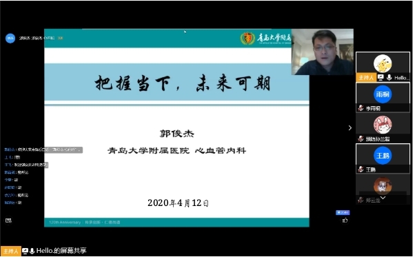 4月12日晚,青岛大学附属医院心内科副主任、崂山院区心内科党支部书记、援鄂医生郭俊杰做客SUNBET申博云端报告会,以“把握当下,未来可期”为主题为公司1300余名师生讲述援鄂52天的一线经历与感受。