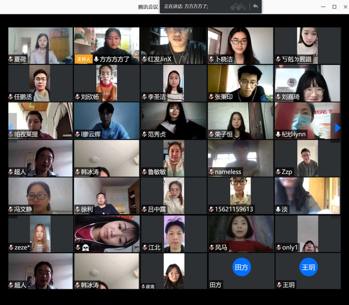 首先,王方讲解目前国内疫情的现状,强调大家目前仍不可懈怠需提高警惕,并指出每个人与国家息息相关。之后,由卜晓洁与刘嘉琦作为员工代表发言,分享自己在疫情期间的感受心得。接着,王方总结目前返校现存障碍,并以此提出返校路途中和返校后的防疫规范。最后参与会议的每位员工总结了从入学到现在的学习、工作、科研方面的进展,分享自己疫情期间的学习生活状况,并提出自己的返校方式及风险评估。