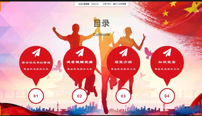 活动伊始,化学1902班团支书周钰带领全体员工学习习近平总书记对中国青年们的寄语。接着,化学1901班团支书刘梦婷在会议上播放“五四精神”相关视频,邀请全体员工观看;后来,由各个宿舍舍长介绍本宿舍的有关“青春”的宿舍名称,舍员全体喊出宿舍口号。随后,针对五四青年节的相关知识,刘梦婷组织进行有奖知识问答活动,并公布获奖人员。最后,刘梦婷对本次活动进行总结,说道:“青年是祖国的未来,是民族的希望,希望我们化学专业19级的全体同学可以成为新时代下的有为青年。”