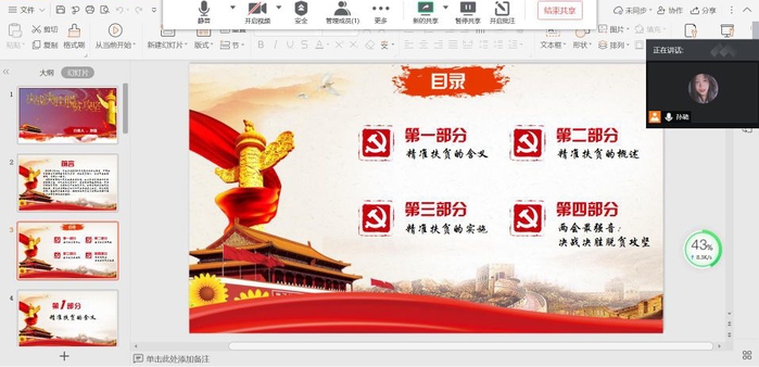 首先,王璐带大家回顾了此次“两会”中的看点,讲解了会议中提到的重要精神和习近平总书记的重要讲话。具体分析了政府工作报告中有关疫情防控“下半场”怎么打、今年经济社会发展预期目标如何确立、脱贫攻坚如何啃下“硬骨头”等我国面临的新情况下诸多问题的解决方案。随后,孙璐就新形势下的精准扶贫方略展开了进一步讨论,说明了中国作为一个人口大国,民生问题无小事。孙璐重点分享了扶贫工作对改善民生起到的重要作用。接着,孙璐结合两会在脱贫攻坚方面的提案,讲解了政府在脱贫攻坚的举措和成效。参会人员对于新形势下的扶贫工作所取得的成就展开了讨论,赵东分享了精准扶贫方略实施后,家乡产生的良好变化。会议最后程志远结合“两会”内容,对本次活动进行了总结,并强调党支部成员应实时跟紧党组织步伐,积极关注国家热点问题,把思考落实在行动上。