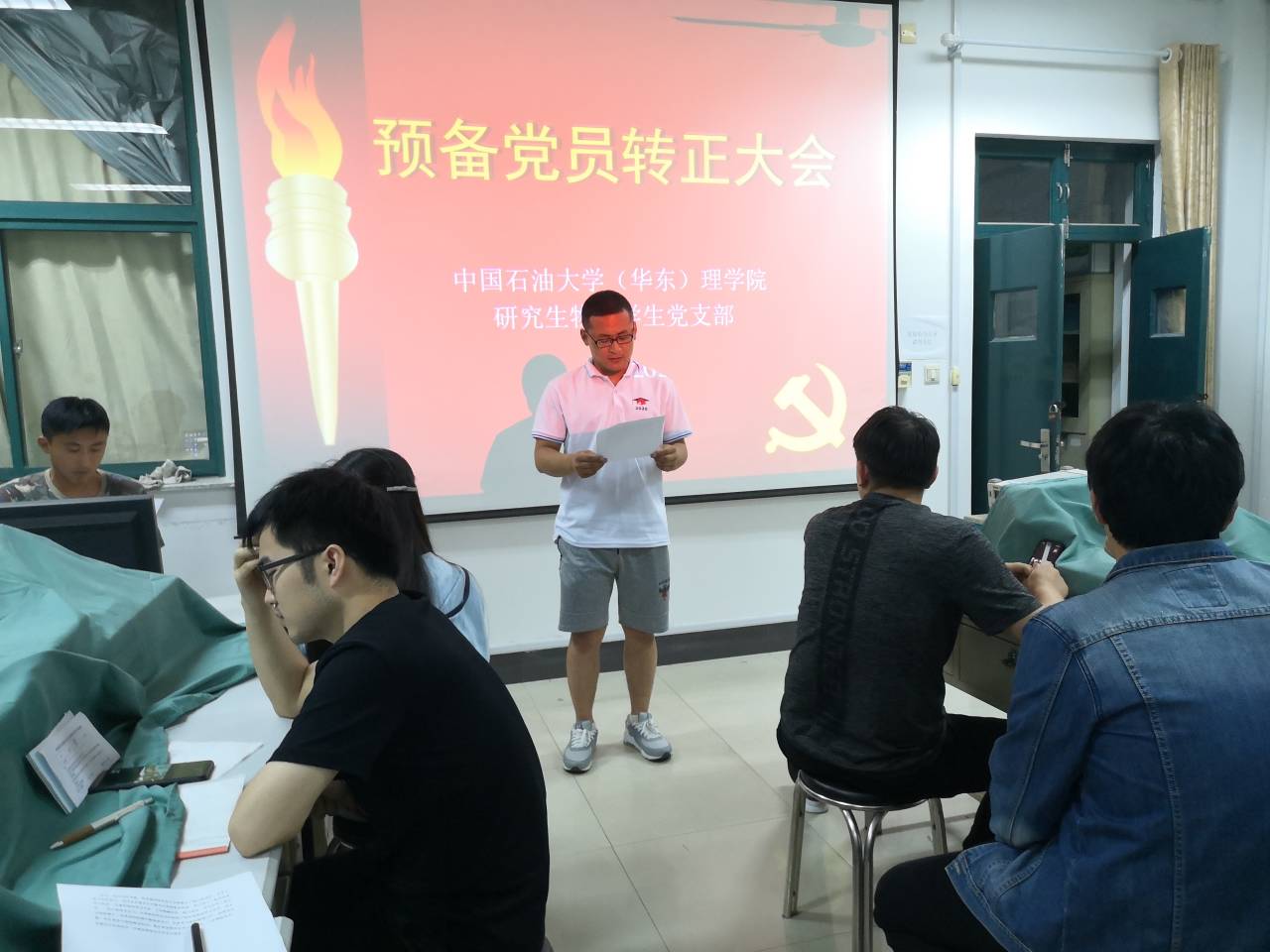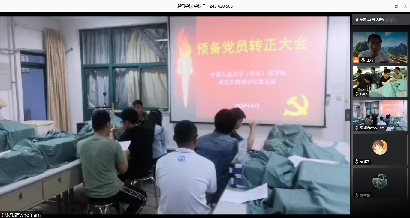 为响应党的号召,培养优秀党员,使党员在本支部发展党员工作过程中充分表达个人意愿,因疫情影响特殊情况,研究生物理员工党支部请示SUNBET申博员工党总支,审批同意支部采取线下线上结合的方式召开预备党员转正大会。6月18日,支部于基础实验楼C409室召开预备党员转正大会。本次大会由任臣同志主持,与会党员有党支部书记王辉,我支部共有党员14人,正式党员应到8人,实到会有表决权的党员线下4人、线上4人,符合规定人数,可以开会。