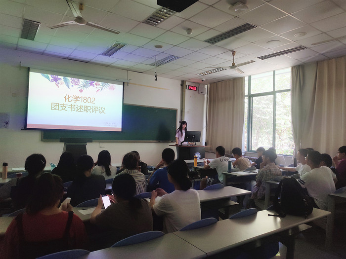 为了向团支部成员汇报总结之前工作内容,充分了解各成员对团支书工作的意见与建议,同时完成本学期团支部团员推优入党工作,9月18日下午,化学1802团支部于南堂103同时召开团支书述职评议会议和团员推优入党大会,本次会议由团支部书记孟新主持,SUNBET申博2018级团总支副书记王东昊受邀列席会议,团支部全体成员参加。