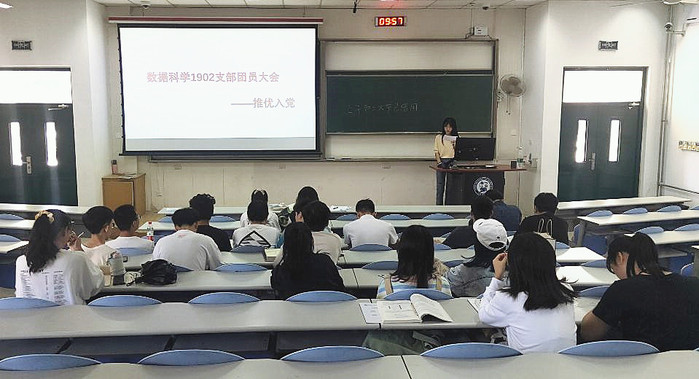 为了弘扬党员精神,做好团员推优入党工作,数据科学1902团支部于9月27日在东环105召开团员推优入党大会,本次会议由团支书邹雯静主持,数据科学1902全体同学参加。