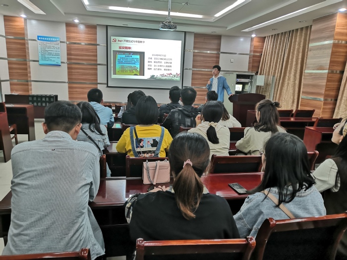 会议伊始,徐东彦首先强调了延安在中国人民革命斗争中的重要意义,并向大家介绍本次活动邀请的主讲人李德凯同志。接着,李德凯向大家讲述了延安精神的内容,并分享了自己的延安行经历、见闻和对延安精神的理解。讲到习近平在延安的成长、蜕变时,党员同志们都情绪高涨,掌声此起彼伏。他多次提到习近平在延安时不怕苦、不怕难,不忘初心、平易近人,为当地老百姓解决了许多实际问题,并强调党员要学习革命前辈们艰苦奋斗、无私奉献的精神。随后,王现元进行诗朗诵,歌颂延安精神,并表示要将延安精神发扬光大。会议最后,徐东彦总结道,“延安精神是中华民族的优良传统的继承与发展,是我们党的性质和宗旨的集中体现。我们作为新时代的一员,要继承延安精神的根本宗旨,将延安精神发扬光大。”