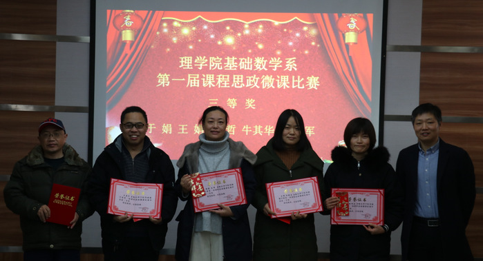 本次思政微课比赛,按照全国微课比赛的要求制作PPT和录制微课视频,为了保证作品质量,系里组织多次试讲,张丹青老师全程参与指导,所有参赛团队教师充分挖掘思政知识点,从教学设计、PPT制作及最终的录制视频,每个环节都用心体会,一遍遍地打磨,充分体现了良好的团队协作精神。评比阶段,从校内聘请专家,分别从思政、数学内容、视频制作、讲课素养等方面进行评价,最终评出一等奖4项,二等奖5项,三等奖5项,张丹青老师获得特殊贡献奖。