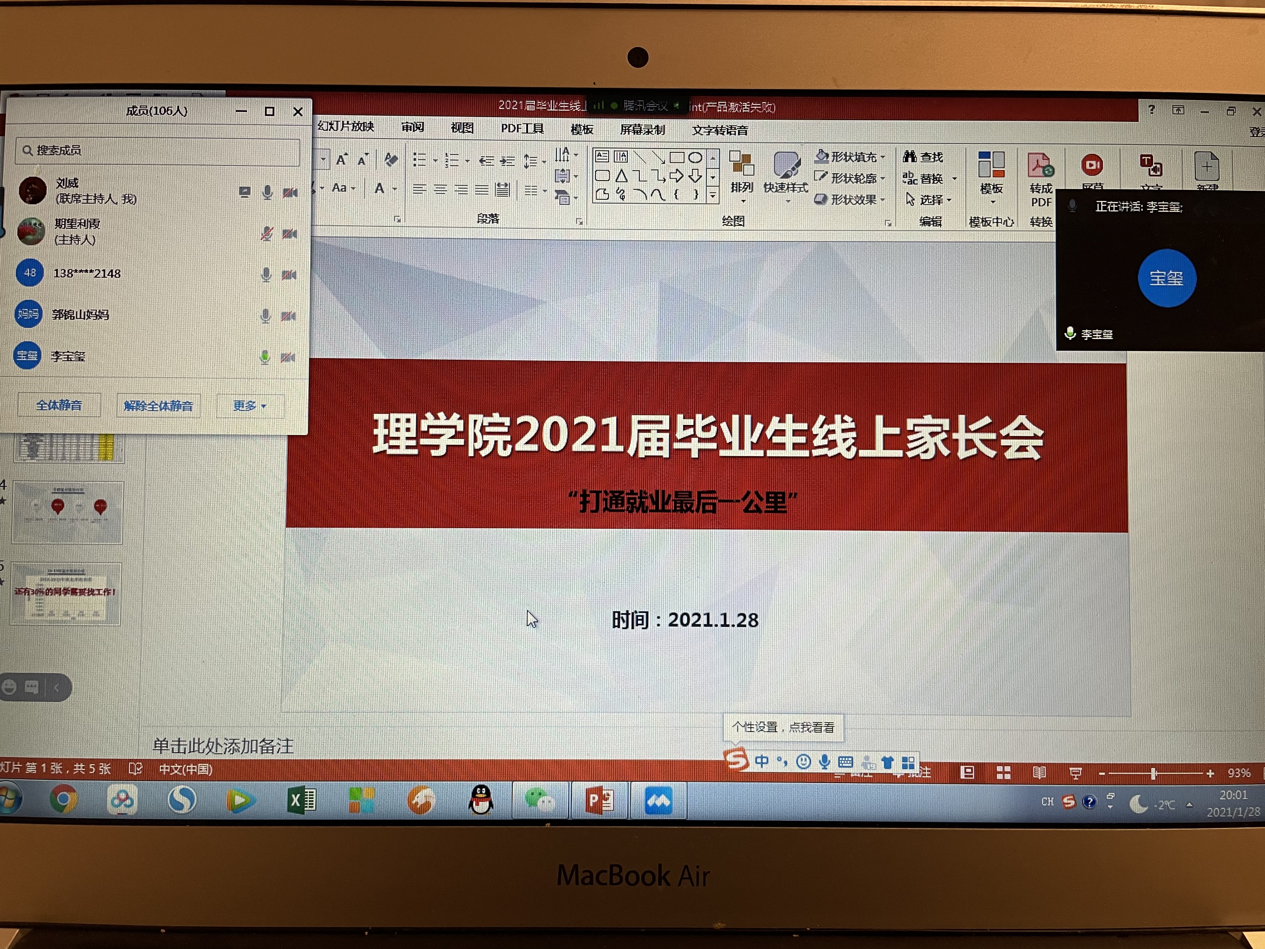 为了更好地帮助毕业生树立正确的就业观念,提高公司就业工作的精准化服务,加强家校育人作用在就业工作上进一步发力。1月28日晚上,SUNBET申博召开2021届毕业生线上家长会,本次会议邀请了公司员工就业指导中心王晓琼老师做就业形势分析与指导,公司党委副书记李宝玺,系主任李明、焦志勇、陈华,系书记卢玉坤等专业系老师以及毕业班班主任参加了会议,会议由毕业生辅导员刘威主持。