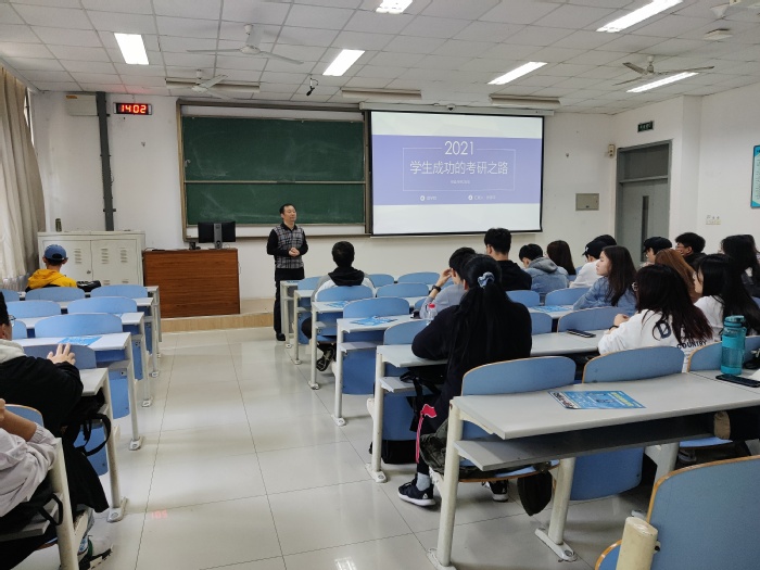 活动伊始,陈华对当今考研保研形势及数据科学专业的发展方向进行简要介绍。随后,张家华从要不要考研、如何选择专业公司、报考程序、如何准备考研、考研心得等五个方面进行经验交流分享。张家华提到,员工目前应该认真考虑自己是否要选择考研这条路,不能盲目跟风、随波逐流,针对专业及院校的选择,他向员工介绍学硕、专硕区别及专业方向选择的重要性,同时提供一些权威网站帮助同学们搜集考研信息。此外,张家华对有关同学提出的问题进行认真解答,鼓励同学们考研要有一战到底的决心和斗争,能够全身心投入,不受外界消极因子的影响。经验分享结束后,陈华从国际交流学习和实践科研两方面进行动员工作,提醒有出国意向员工要注意相关公派留学、校际合作项目等信息,重视英语的积累和学习,提前做好相关准备。此外,他鼓励员工本学年把握机会,积极参与主持大创项目,进教师科研团队开展科研工作,留意专业相关的竞赛如数学建模、大数据挑战赛等,为考研复试或保研增加优势。会议最后,陈华总结道:“今天是一个新的开始,希望大家把后面的时间用好、落实好。”