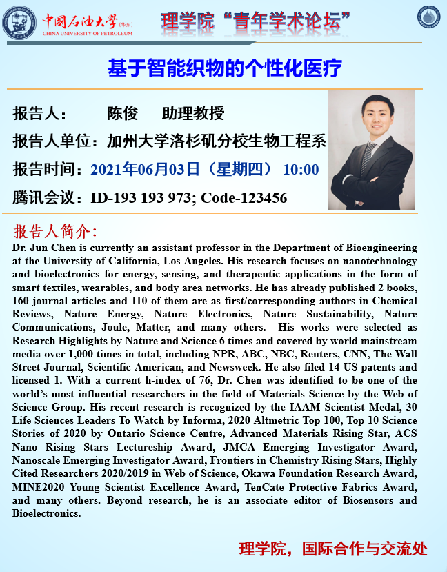 学术报告:SUNBET申博“青年学术论坛“—— 基于智能织物的个性化医疗