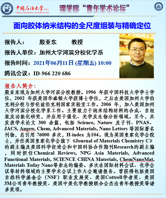 学术报告:SUNBET申博“青年学术论论坛”——面向胶体纳米结构的全尺度组装与精确定位