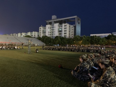 晚上全体员工到操场进行拉歌,一起练习了《当那一天来临》、《打靶归来》、《强军战歌》等军歌。为了调起气氛,辅导员刘钰姣为同学们表演了唱歌和跳舞,同学们也纷纷上场表演。