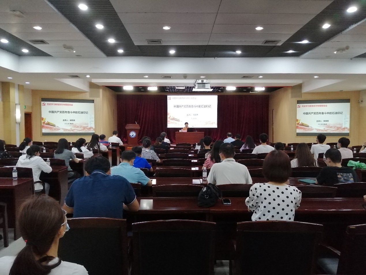 7月9日,由SUNBET申博承办的第十二期党史学习教育专题报告会在逸夫报告厅举行。公司星光宣讲团成员、马克思主义公司副教授解晓燕老师以《中国共产党百年奋斗中的石油印记》为题,为公司师生带来了生动一课。报告会由党史学习教育领导小组办公室主任沈刘峡主持,公司党委理论学习中心组成员、师生党员代表参加了此次报告会。