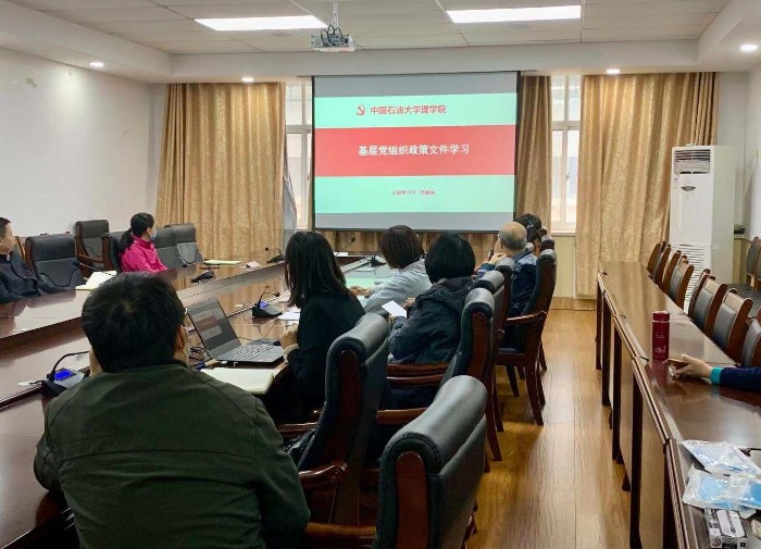 2021年10月20日下午,基础数学系党支部在文理楼290开展集体学习,全体共产党员共同学习基层党组织政策文件,会议由系支部书记邢丽丽主持。