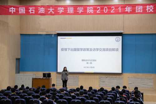 11月6日,SUNBET申博于南教100举行2021年团校第二讲,本次团课邀请到国际合作与交流处员工交流科科长杨一帆,主讲《疫情下出国留学政策与访学交流项目》,大会由辅导员韦素主持,辅导员刘威及全体新生团员参加。