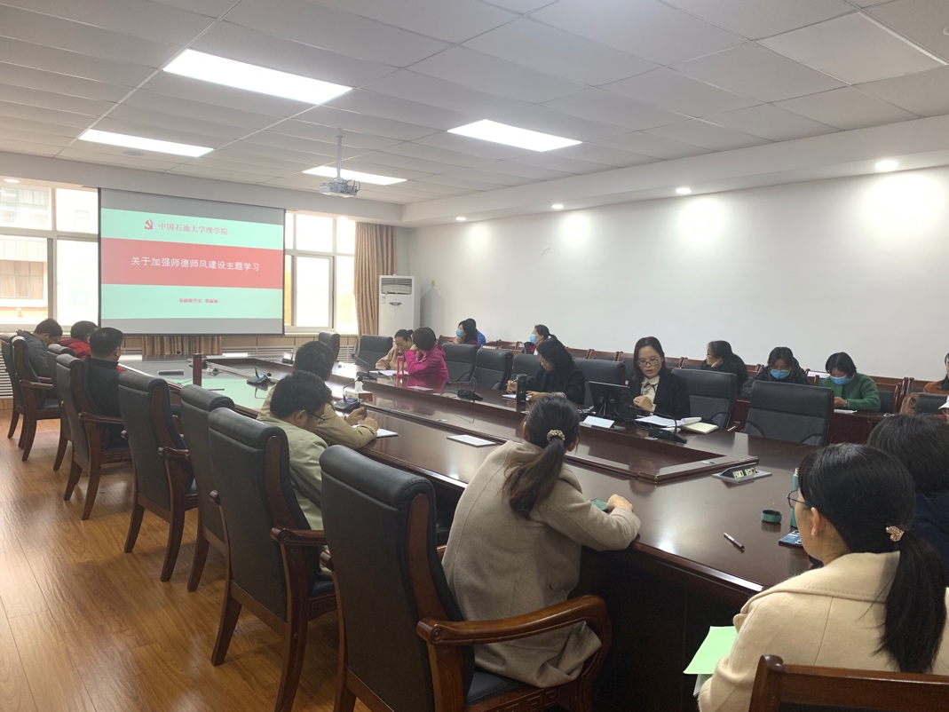 为进一步规范教师履职履责行为,弘扬新时代高校教师道德风尚,11月17日下午,基础数学系全体教师在文理楼290开展了关于加强师德师风建设的主题学习,会议由系支部书记邢丽丽主持。