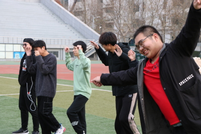 本次团日活动分为室外、室内两个大环节。首先由四个班的团支书和六名主持人带领四个支部的成员进行室外活动。同学们在操场集合后通过报数进行分为六个组,每组均由四个班级的同学组成,有利于减少各班同学间的距离感。室外活动由相识接龙、手舞足蹈、松鼠大树和你比我猜四个环节组成。随着活动的进行,场上气氛逐渐地活跃起来,同学们积极参与游戏。此次活动,有利于增进同学们之间的感情、团队凝聚力和团队配合能力、增强同学们的体魄、让同学们认识到体育运动对新时代青年的重要意义。