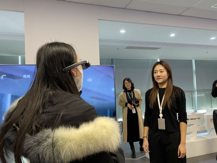 之后同学们观看了企业报国相关视频并佩戴VR眼镜体验了人脸识别技术。