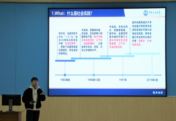 首先,陈楼对面向全体实践队进行了社会实践培训,他从“什么是社会实践”“为什么要做社会实践”“到哪儿做社会实践”“什么时候做社会实践”“由谁做社会实践”以及“怎样做社会实践”六个方面出发,全面阐述了社会实践的重要意义以及实践开展过程的各种注意事项,并对新闻宣传的重要性和方式方法进行解读。其中,他以一支队伍中成员的分工为例,对社会实践开展流程进行了分解,重点强调了社会实践每一阶段的主要任务和分工建议。