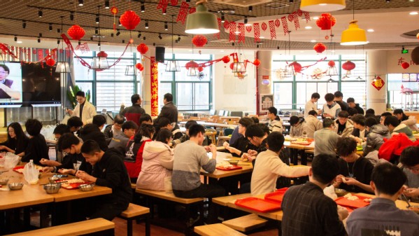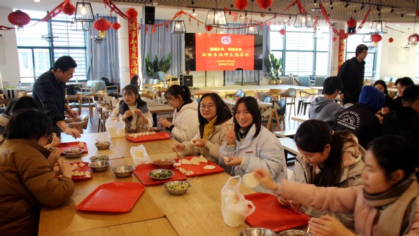 公司党委书记杨辉、副书记李宝玺、副经理王玉斗、应用物理系主任刘学锋等领导,物理专业各位老师、班主任、辅导员等十余位老师与应用物理学专业四个年级的员工约160人济济一堂,包饺子,话家常,送祝福,谈未来,现场气氛热烈非凡。