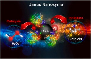 尽管基于纳米酶的比色测定已被广泛用于生物传感,但仍存在一些局限性,如纳米酶催化活性低、对被分析物敏感性差以及缺乏对结构-活性关系的了解。在题为Pd-Fe3O4 Janus nanozyme with rational design for ultrasensitive colorimetric detection of biothiols的研究工作中,光化学传感团队联合材料公司鲁效庆教授团队建立了一种基于密度泛函理论辅助设计的Pd-Fe3O4纳米酶,通过种子介导法制备的Pd-Fe3O4哑铃状纳米颗粒(DBNPs)具有均匀的异质二聚体纳米材料,开发了一种用于生物硫醇检测的超灵敏比色方法。超灵敏的生物硫醇检测可以从两个方面实现,一方面,由于哑铃结构中Pd和Fe3O4的协同作用,Pd-Fe3O4 DBNPs的过氧化物酶模拟活性较单个组分增强;另一方面,当目标生物硫醇分子存在时,其对Pd-Fe3O4纳米酶的抑制作用也显著增强,上述结果在实验和理论计算中均得到证实。这项工作不仅显示了哑铃型双金属纳米酶优异的功能,而且还为用于生物传感和生物医学应用的高性能纳米酶的设计提供了理论指导。该成果发表于分析化学领域知名期刊Biosensors and Bioelectronics,IF=10.618,化学专业本科生段伟和硕士研究生仇志伟、曹守福为共同第一作者,曾景斌教授和材料公司鲁效庆教授为共同通讯作者。