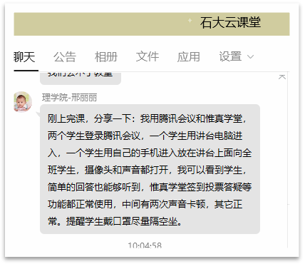 3月14日始,首批线上上课的老师们在群里及时分享线上授课心得,为后续上课的老师们提供经验参考。