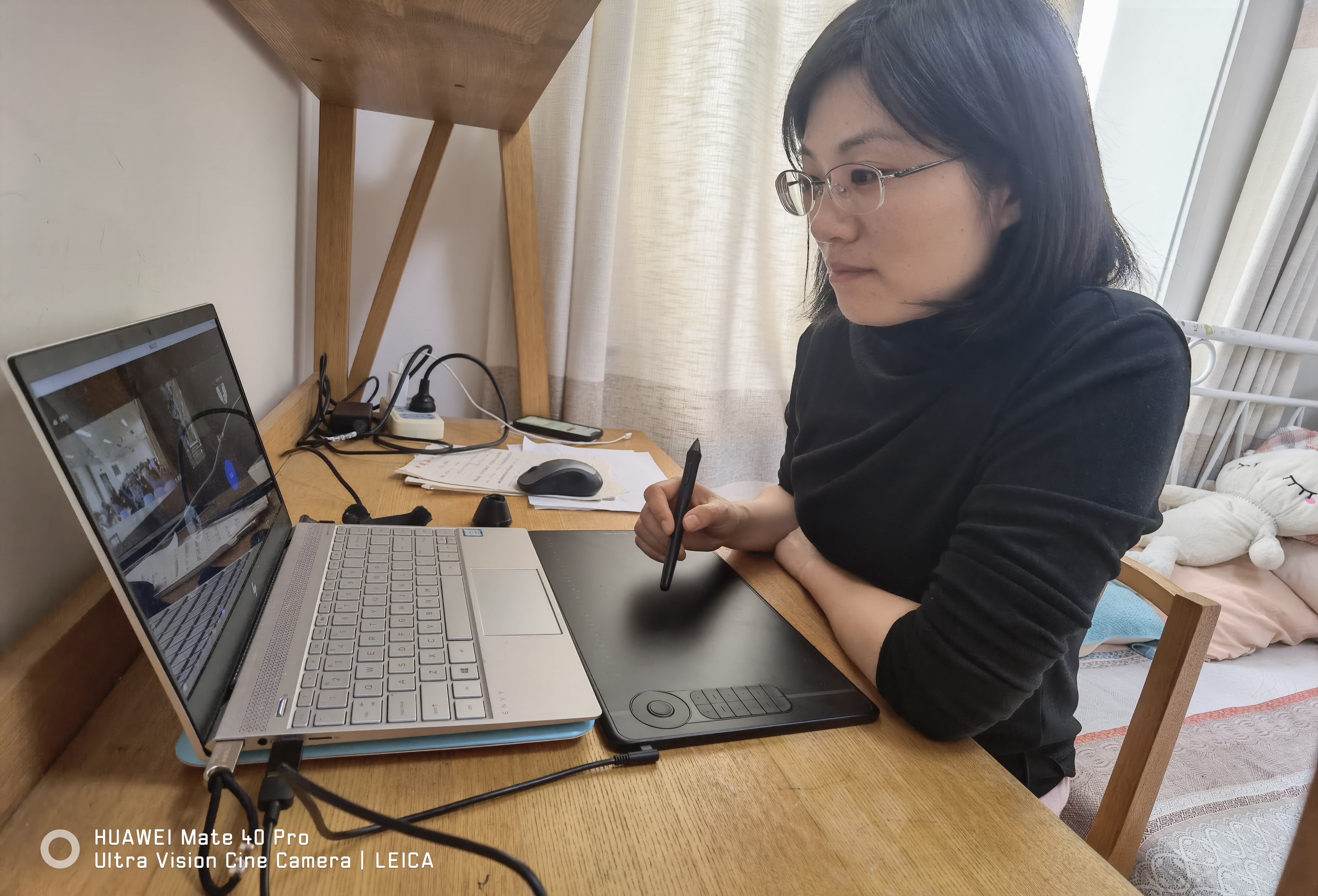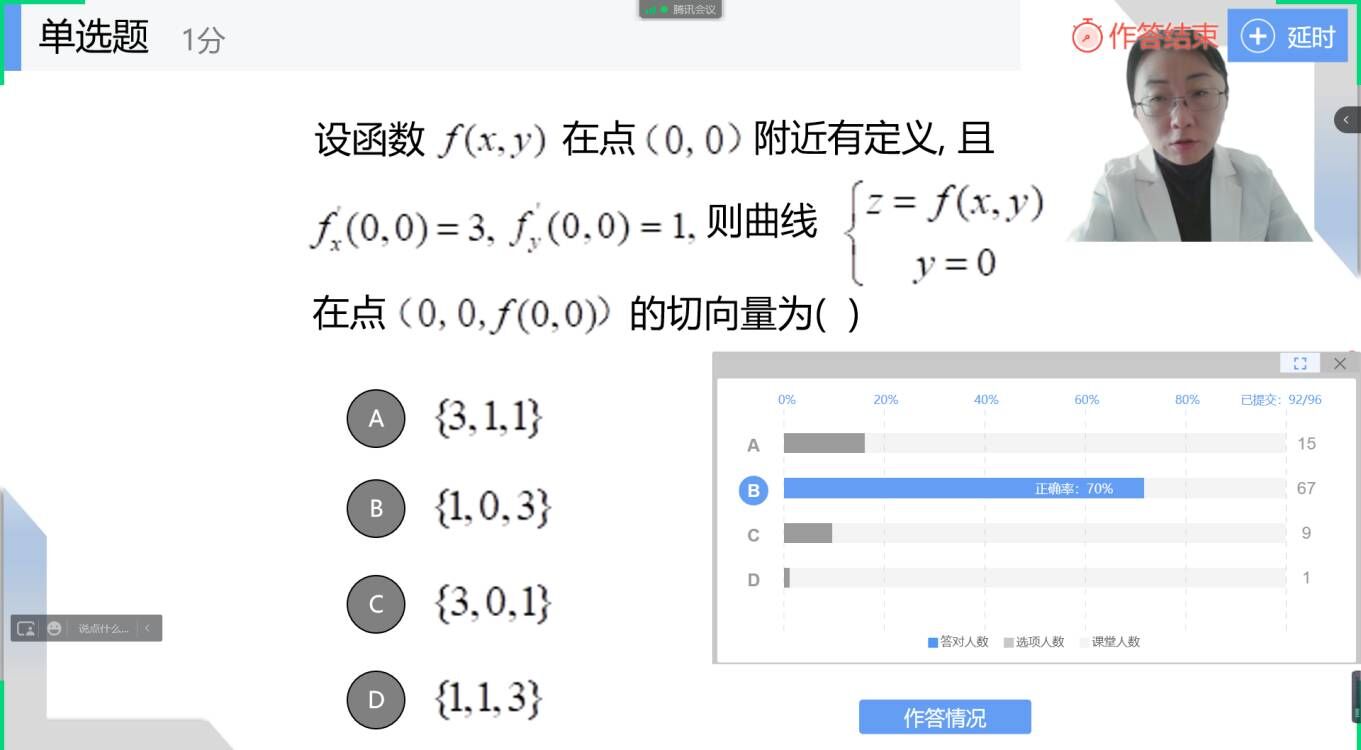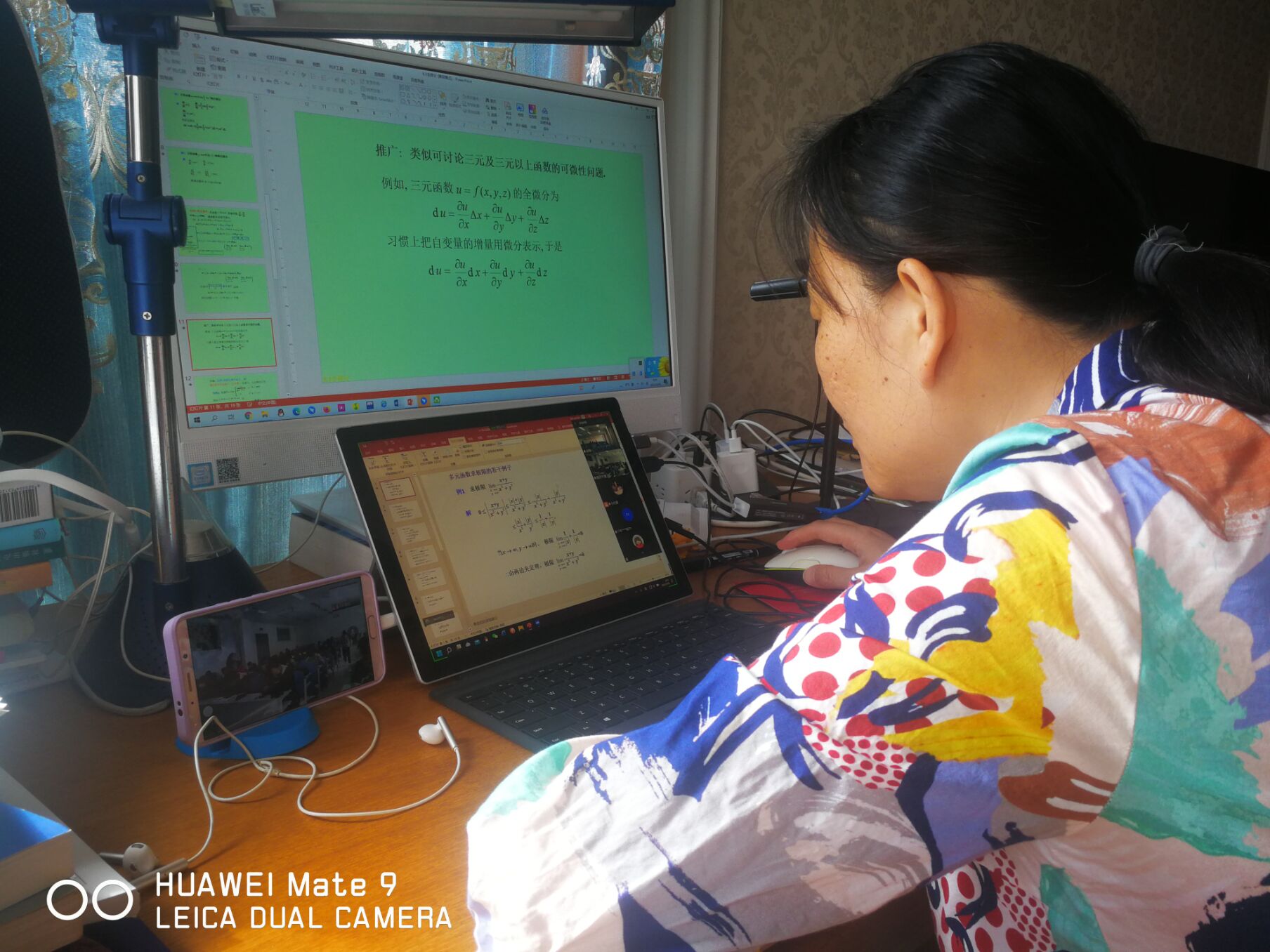 通过提前建立答疑小组、建立共享文档、及时与课代表交流、与同事分享经验等措施保障了课程的顺利推进,提高同学入镜率的手机支架、增加理论可视性的手写板等各种新型“武器”层出不穷。