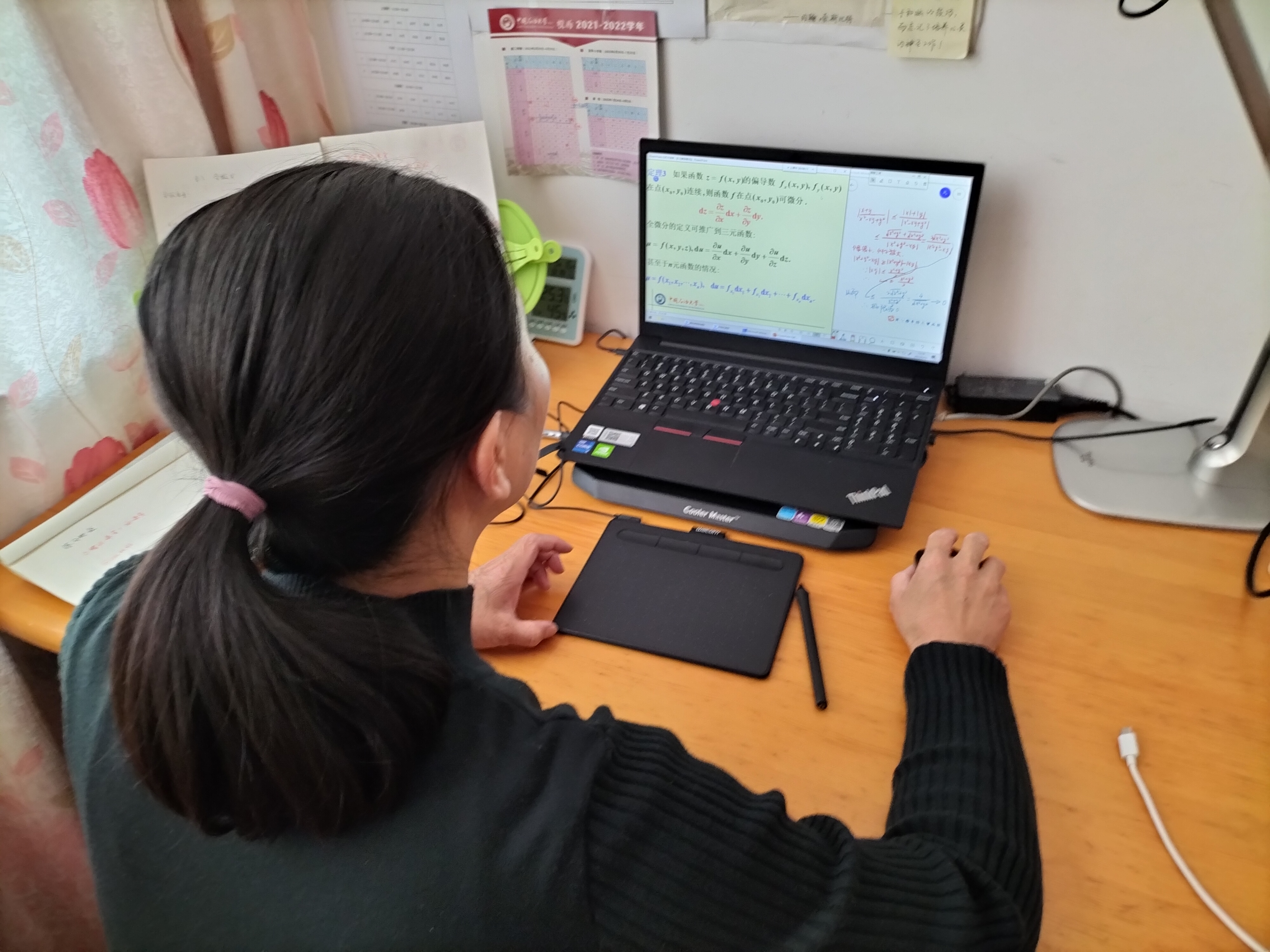 腾讯会议、QQ视频、雨课堂等网络平台成为“施展拳脚”的广阔天地,手写板变成称手“兵器”辅助PPT讲解,更有用鼠标做标注的“赤手大侠”,摄像头也成了老师们传授知识的得力“干将”……师生齐出境,让线上课堂变得更有温度、让数理知识距离变得不再遥远。
