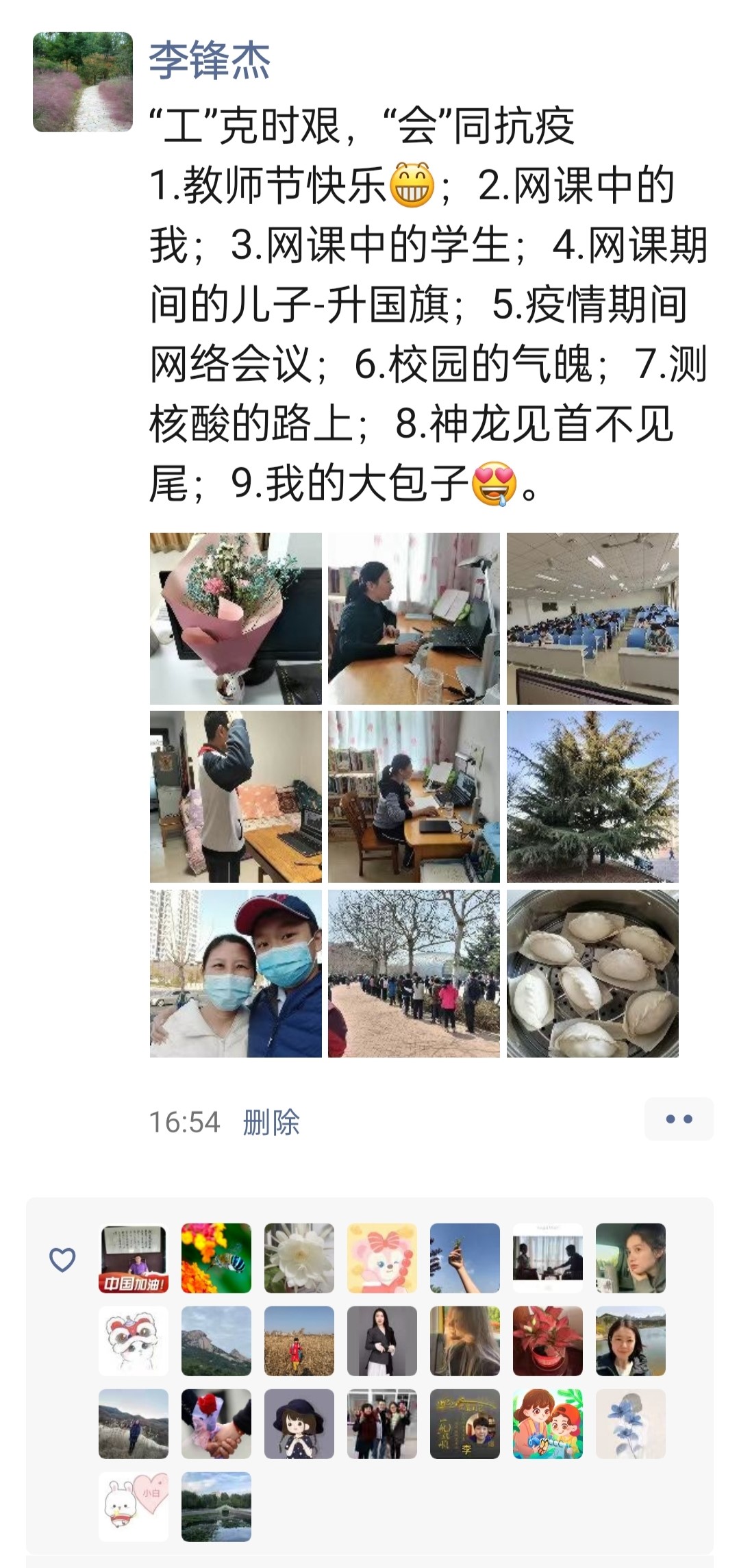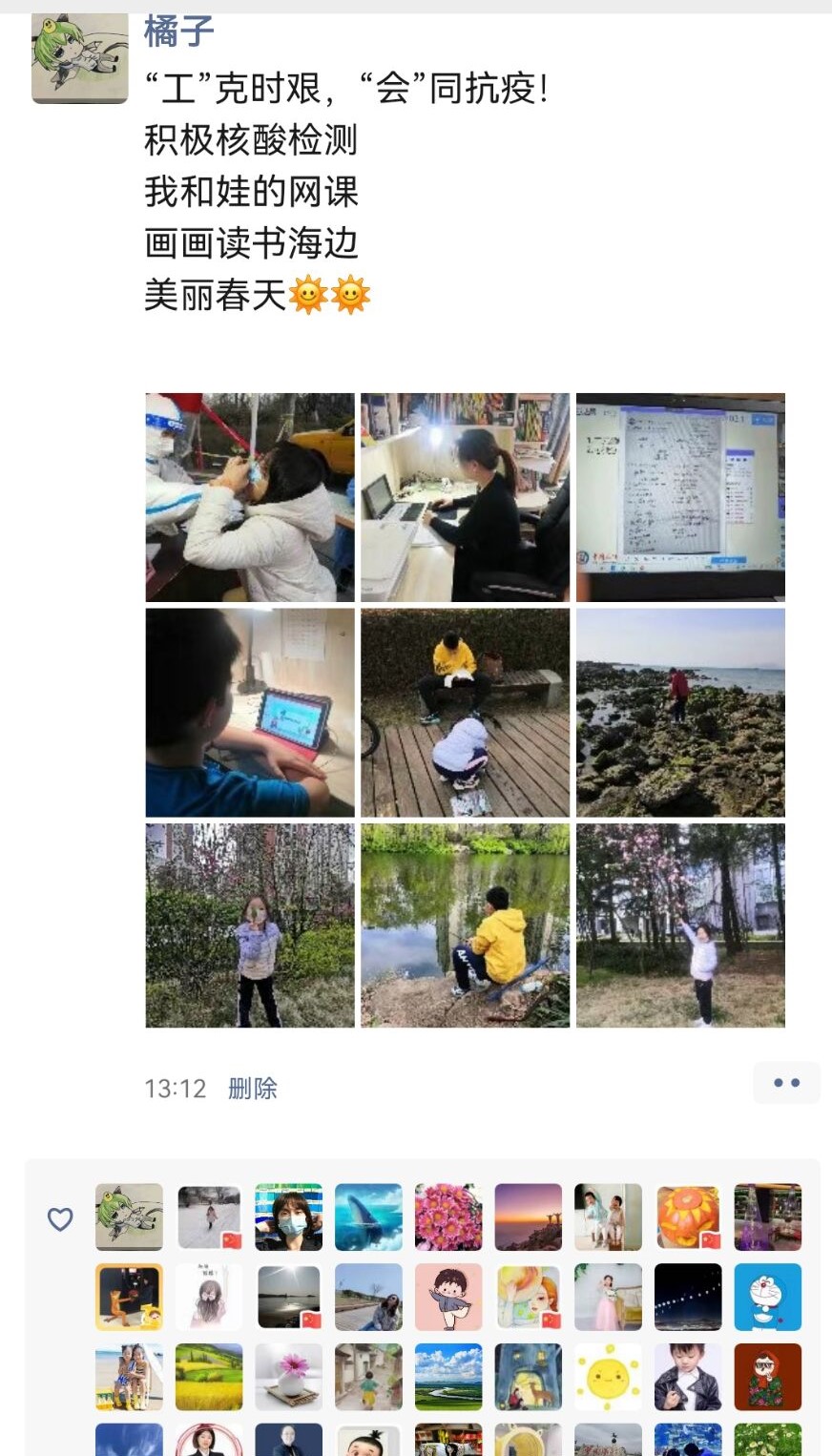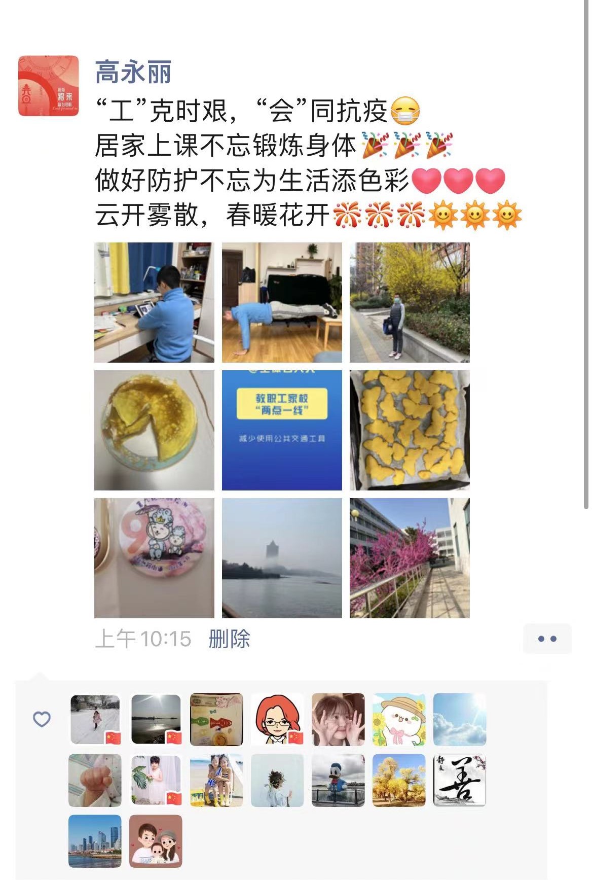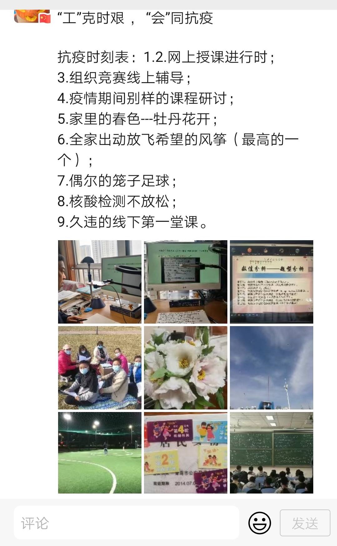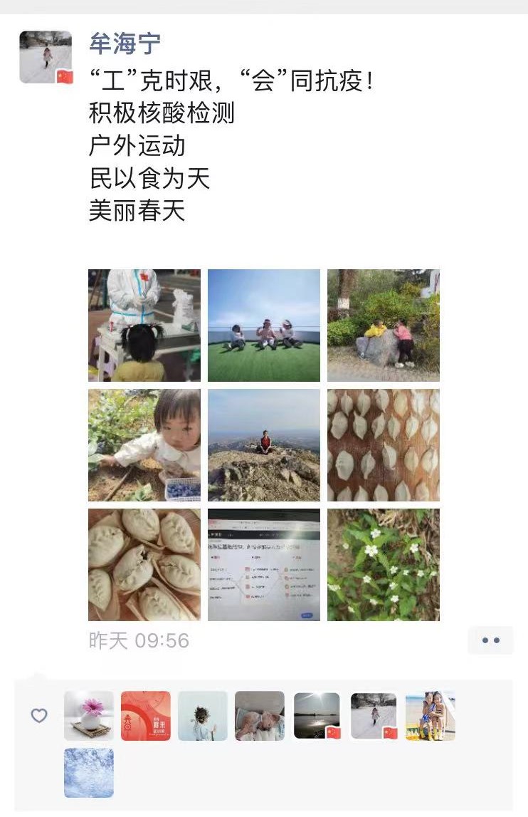 “疫”来我“往”-不慌不忙+SUNBET申博+吕炜 在新一轮新冠疫情影响下,为积极响应公司号召,自觉做疫情防控的实践者、示范者,师生健康的关爱者、守护者,同心抗疫的志愿者、参与者。校工会组织了“‘工’克时艰 ,‘会’同抗疫”----我的“朋友圈”展示评比活动。公司56位老师积极参加此次活动,经过公司评比,选送30件作品参加展评并获优秀奖,公司工会获评优秀组织单位。