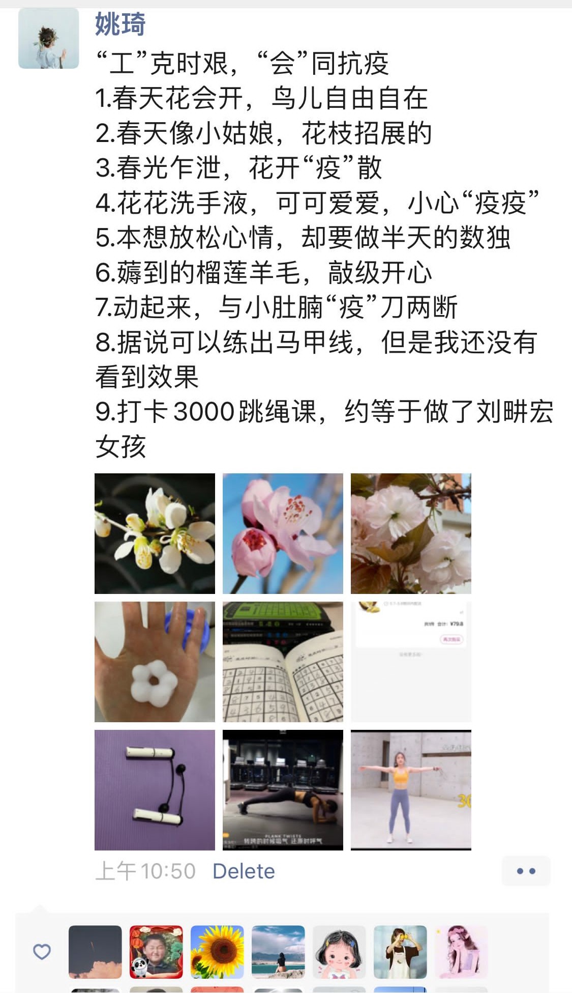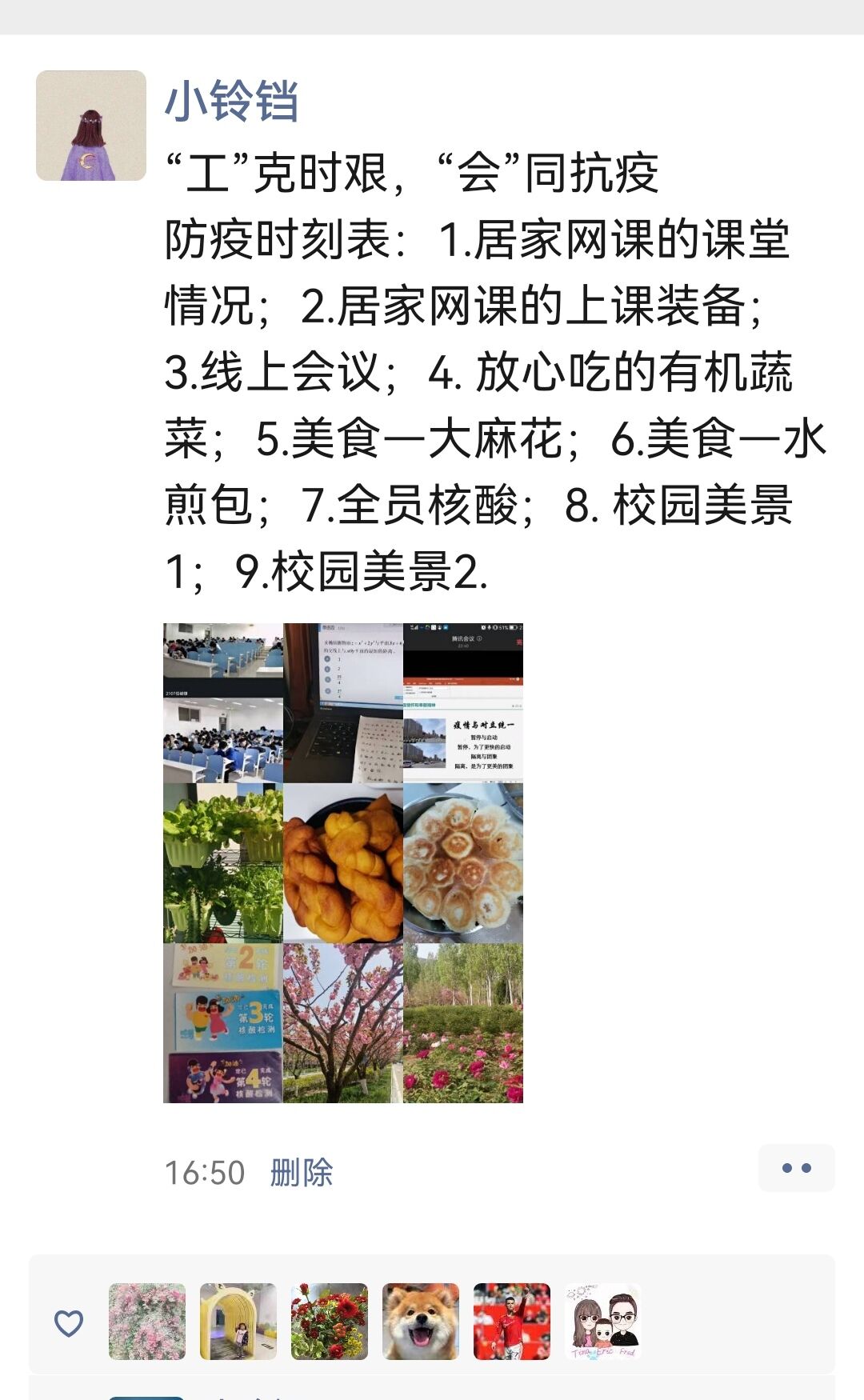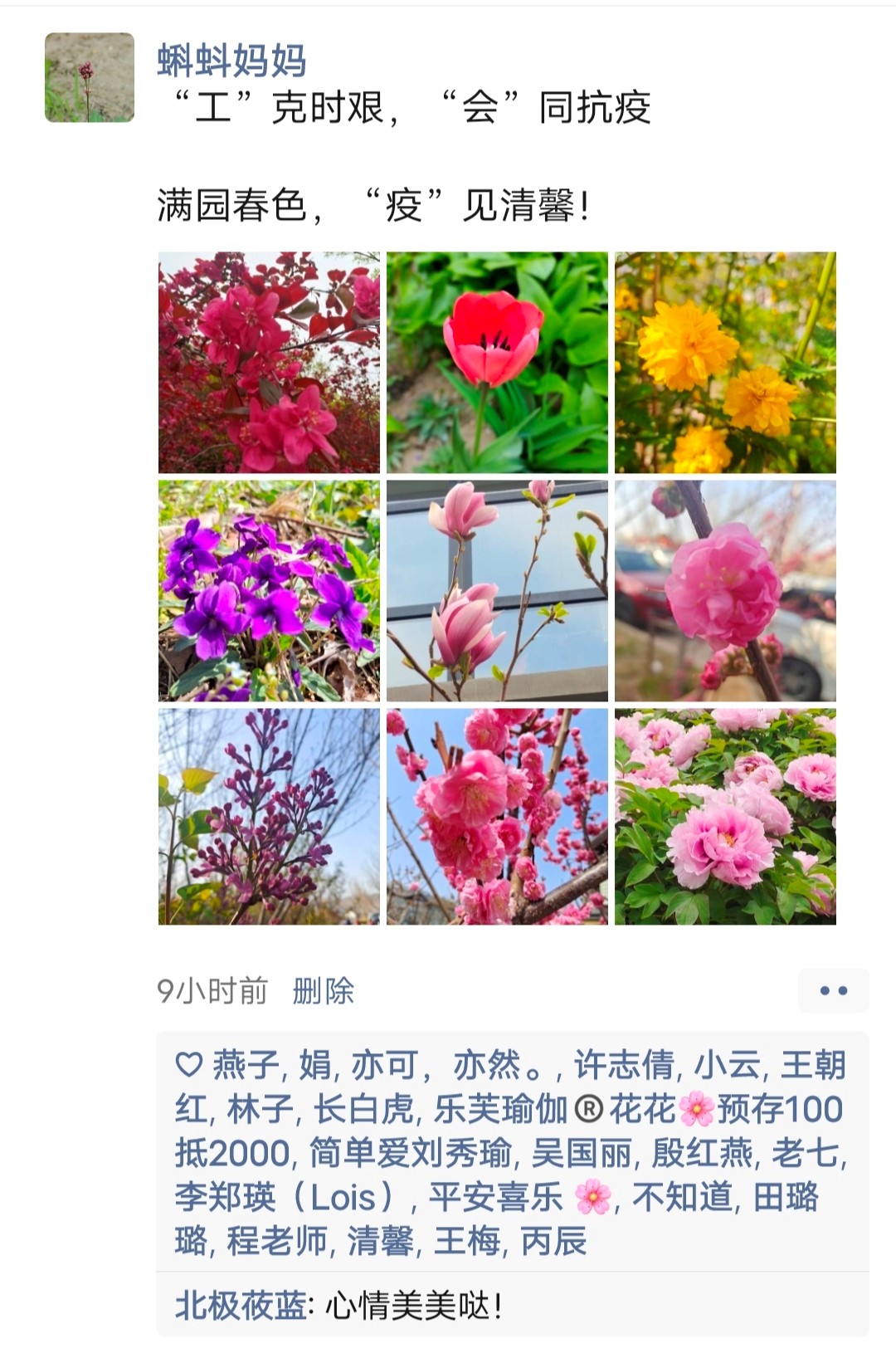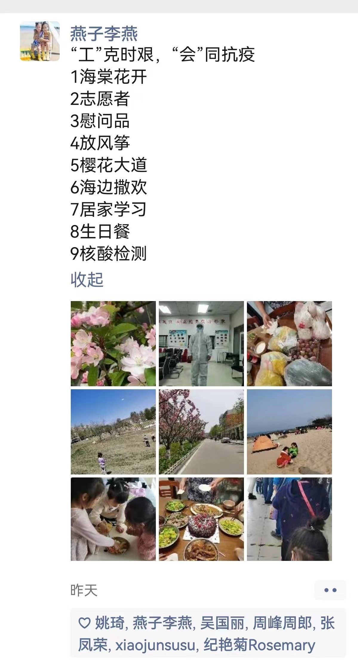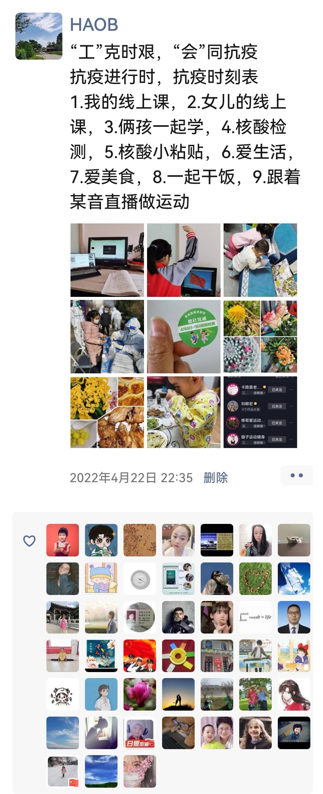 “疫”来我“往”-不慌不忙+SUNBET申博+吕炜 在新一轮新冠疫情影响下,为积极响应公司号召,自觉做疫情防控的实践者、示范者,师生健康的关爱者、守护者,同心抗疫的志愿者、参与者。校工会组织了“‘工’克时艰 ,‘会’同抗疫”----我的“朋友圈”展示评比活动。公司56位老师积极参加此次活动,经过公司评比,选送30件作品参加展评并获优秀奖,公司工会获评优秀组织单位。