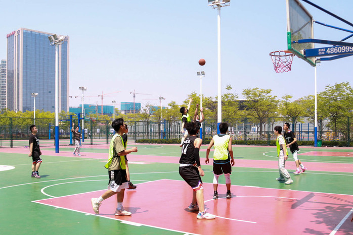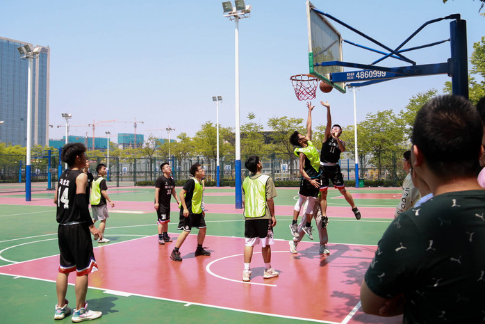 午间的赛场上,球员们配合井然有序,攻守切换迅速,挥洒着青春的汗水;场外观众为球员们加油助威,球进时,他们的欢呼声使得赛场的气氛愈加浓厚;裁判们公正严明,聚精会神观察着球场上的每一个细节,为球员提供了一个公平公正的竞争环境。