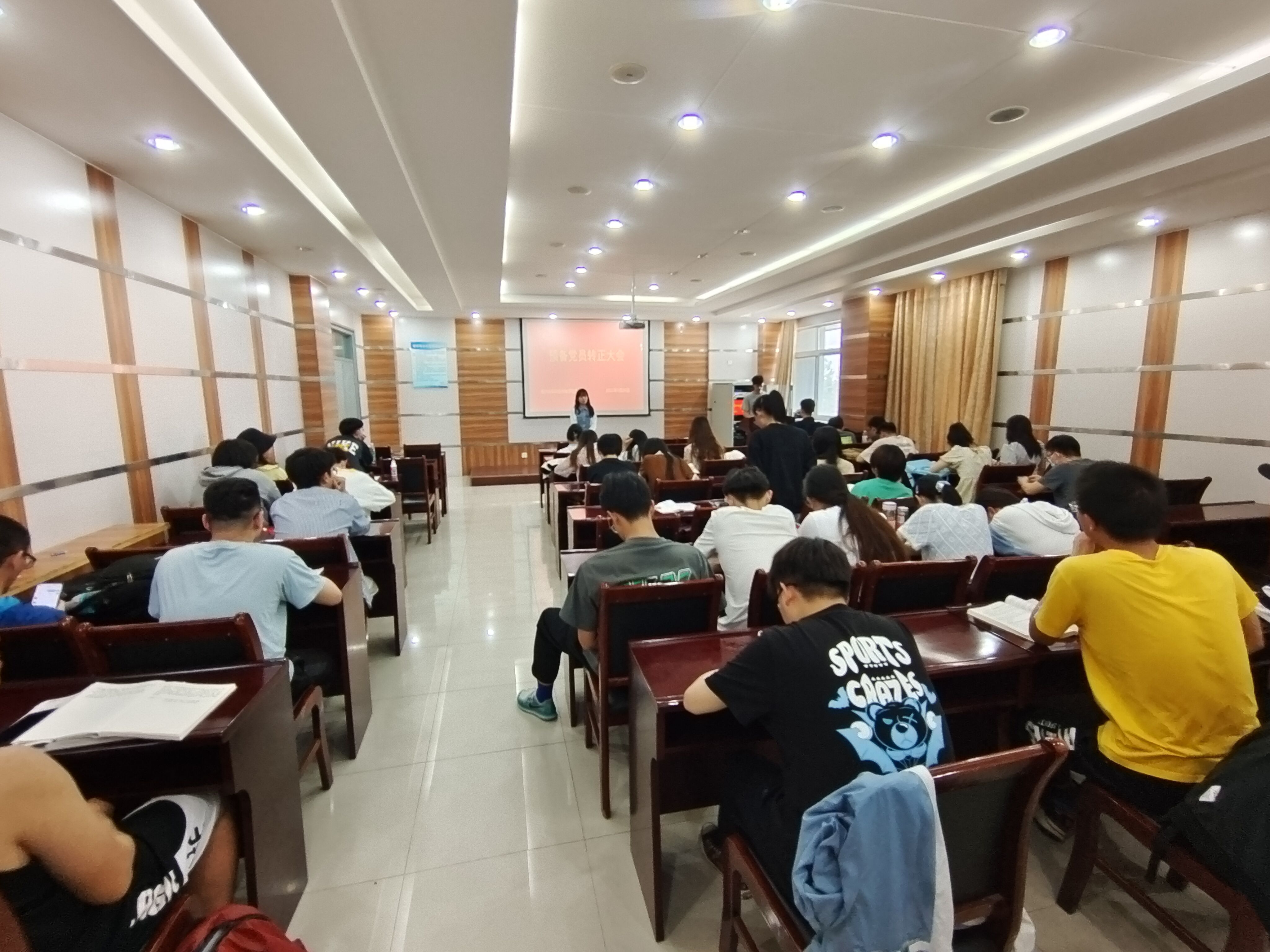 2022年5月20日下午14:00-15:30,SUNBET申博光电党支部在文理楼254召开预备党员转正支部大会,支部大会应到党员41人,其中正式党员11人,实到党员36人,其中正式党员11人,支部大会召开有效。会议主要内容为讨论刘诗琦、张新宇、唐子淇、孙玉婷、褚浯桐、孙祎辰、孙博文、李华洋、李禹杏、高凤田和张健军同志的转正问题。