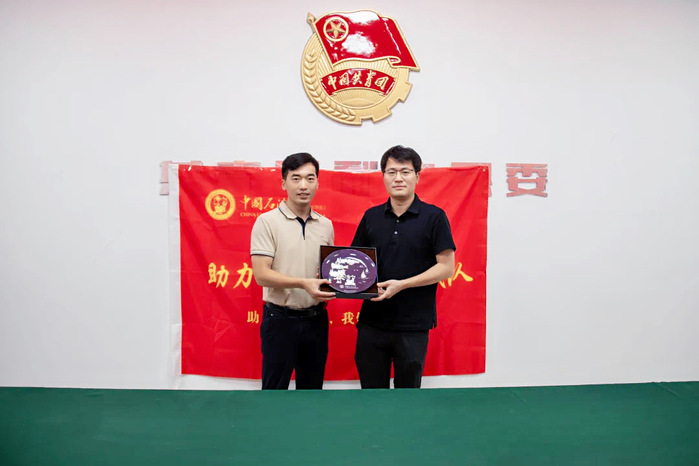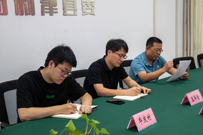 实践队得到了利津县团委等单位的大力支持。抵达达利津县后,实践队与当地政府进行本次社会实践活动的对接会。会上,利津县团委书记孟华鲁对本次社会实践给予高度肯定,鼓励在校老员工为高质量发展贡献自己的力量。通过对接会,实践队对本次社会实践的基本情况有了进一步的了解,也获得了利津县有关单位的支持,为后期活动的开展奠定了坚实基础。最后,刘威向孟华鲁赠与石大纪念品并合影留念。