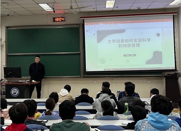 会议伊始,辅导员崔皓就班委自身定位话题进行讲解,他提出班委应充分发挥好师生之间的桥梁作用,有激情、有责任感地忧同学之所忧、解同学之所难;同时,他强调员工干部要首先明确自己员工的定位,时刻把第一课堂学习成绩放在第一位。随后,崔皓分别指出了现有的班委会建设与班委反思总结不足等问题,告诫各位班委要树立团队意识,加强在晨练考勤与活动策划等方面的团体合作并增强创新性思维、做好阶段反思。与此同时,他又针对近期工作安排分别对各班干部提出七项具体工作要求。除此之外,兼职辅导员雷传捷向各班委分享自己员工干部工作经历,强调员工干部对自己的定位应当是建设者、服务者、引领者、躬行者等。会议最后,崔皓老师就各班班干部工作情况进行总结,告诫各位班干部要谨记以情感人、以德服人,在工作方法上要认清工作理念、打开工作格局、滤清工作思路,成为优秀的班干部团体。