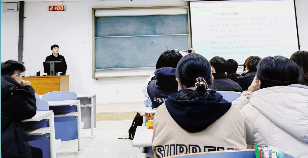 刘威总结了年级出现的问题,并对今后的工作提出了相应规划和要求,重点强调了人身安全、疫情防控等方面的问题,并对寒假员工离校相关工作和考试安排做出详细解释和重点说明。