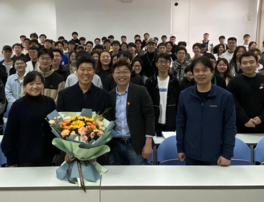 三尺讲台谱华章、四十风雨育英才。4月20日下午,是应用数学系崔俭春老师退休前的最后一次课。当课间铃声响起来的时候,教室里依然回荡着崔老师铿锵有力的声音。应用数学系党支部书记张建松、副主任吕川及其他教师代表们来到上课教室,对崔老师致以感谢与敬意。