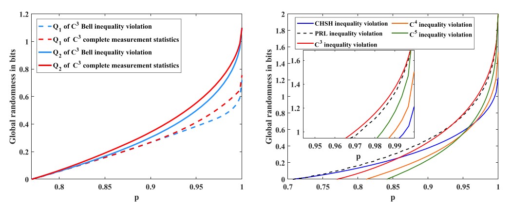 因此,利用量子非定域性设计设备无关量子随机数发生器是一个重要的物理问题。该论文推导了具有任意测量个数的链式不等式的紧的最大量子值的上界,并且得到了上界紧致的充分必要条件。基于此上界,利用含噪声的Werner态通过不等式违反与全概率方法给出了在不同测量下的设备无关随机性的数量分析,结果表明该方案与其他方案(Phys. Rev. Lett. 129, 150403 (2022))相比,在低噪声情况下选择三个测量个数的链式不等式所产生的设备无关随机性的量更高,这一工作揭示了多个测量的贝尔不等式在产生设备无关随机数中的意义,为发展新型量子信息处理任务奠定了重要基础。