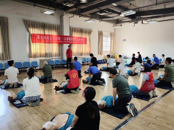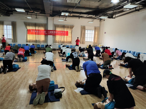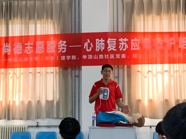 在培训活动中,仇兆强详细地剖析了每一个步骤背后的意义与机理,讲授了心肺复苏的相关理论知识,以及相关设备的操作方法。接着,仇兆强向现场人员逐步演示了心肺复苏的全过程,创新性地以念口诀的方式传授了具体操作的要点与技巧。参与培训的人员进行实践操作,仇兆强针对现场实践的具体问题,提出了相关的建议与看法,并对现场人员的问题进行了详细地解答。