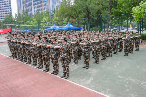 在训练过程中,军训顾问、安全监督谭书臻来到训练场地进行指导,并对员工们提出了训练要求:“服从教官指挥,动作规范整齐,要精神抖擞对待每一个动作,拿出军人刚强般的毅力。”