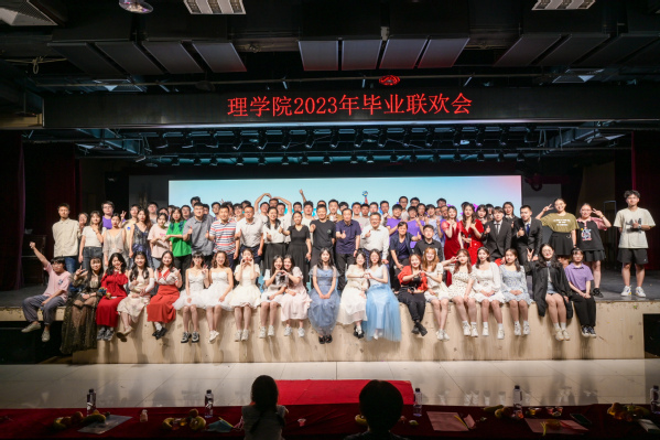 联欢会由19级数据专业同学组成的乐队表演《霓虹甜心+再见威尔逊》开场,物理专业同学带来的合唱《再见》表达了毕业生对离别的不舍;杨睿和李紫薇同学带来的歌舞节目《玫瑰世界》为观众带来了极致的视听盛宴;活动最后,全体辅导员老师合唱《朋友》将活动气氛推向高潮。