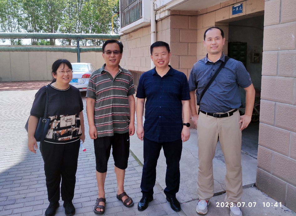 在退休教师谭尚旺和同登科教授家中,详细了解了两位教授的近况,闫统江和郭会分别代表公司和系,向他们在团队建设中做出的重要贡献表示感谢,并表达了衷心的祝愿。