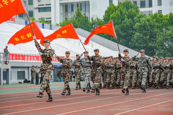 7月14日,军训接近尾声,同学们早上7点在宿舍楼底下集合,并前往操场训练。