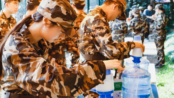 员工进行军训休整 陈翔摄