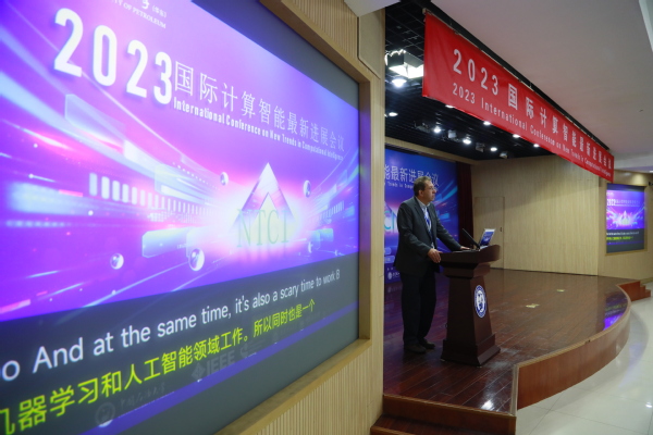 周鹏对各位专家学者来校参会和交流表示欢迎,指出国际计算智能最新进展会议互通研究动态,给相关领域的科研人员和专家学者搭建了交流沟通的平台,在计算智能领域的人才培养、平台建设等方面取得了积极成效,将共同推动国内外计算智能领域的发展与学科间的学术交流。