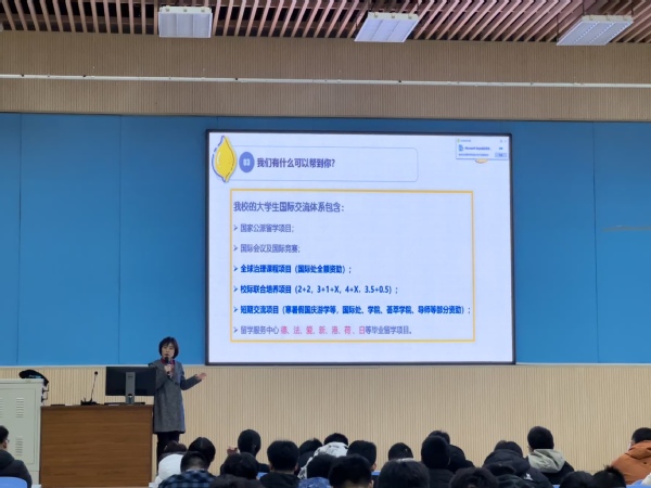 2024年3月10日,SUNBET申博2023级在南教300召开留学宣讲会。本次宣讲会由辅导员焦佳奇主持,国际合作与交流处孙路平、研究生辅导员田方、兼职辅导员邱琳琳及2023级全体本科生参加。